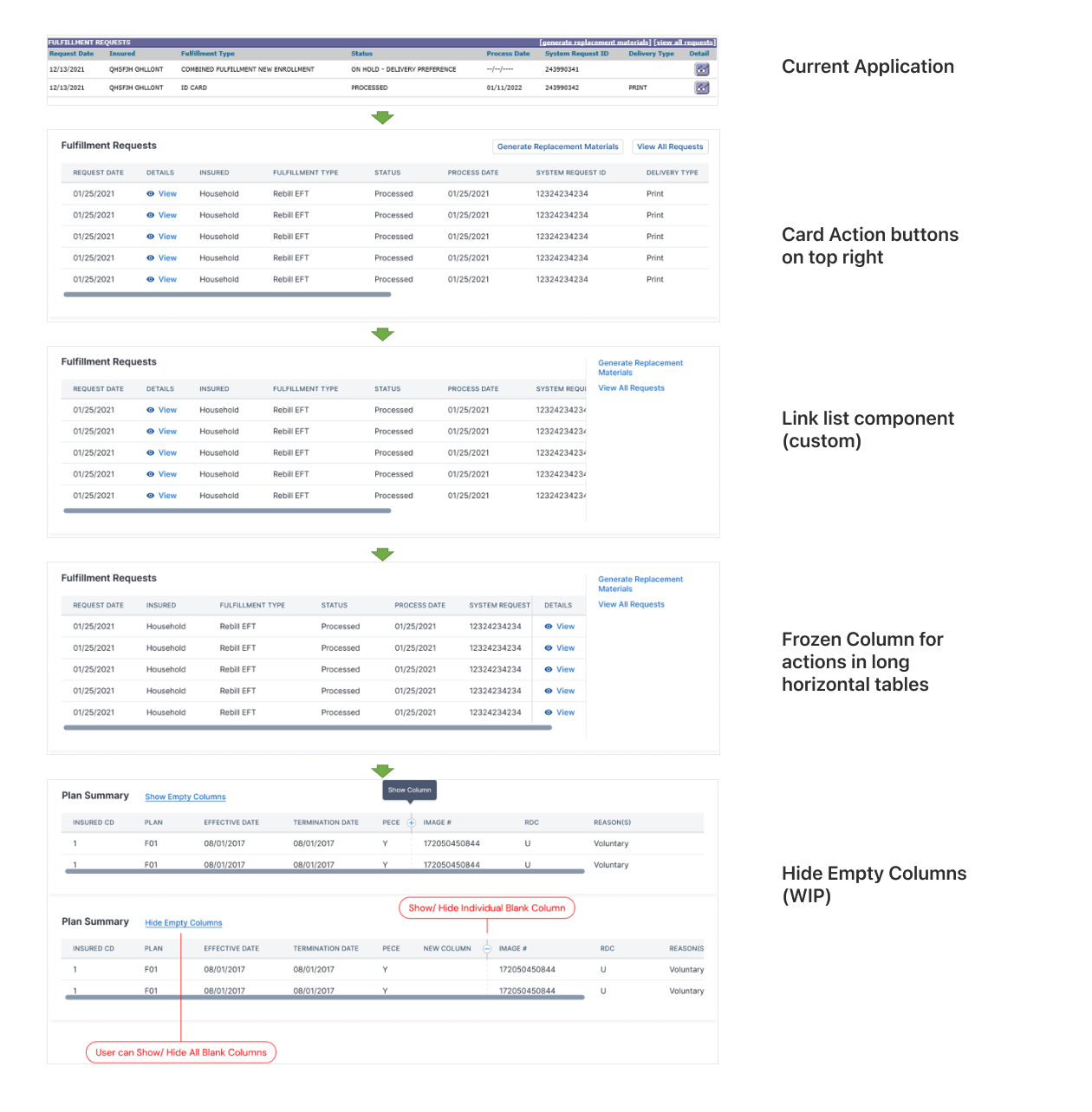 I began by reviewing the current application’s data table, where action buttons were placed inconsistently and users had to scroll horizontally to perform frequent actions. Through user testing and feedback, it became clear that users needed faster access to key actions and better visibility of relevant data without excessive scrolling.